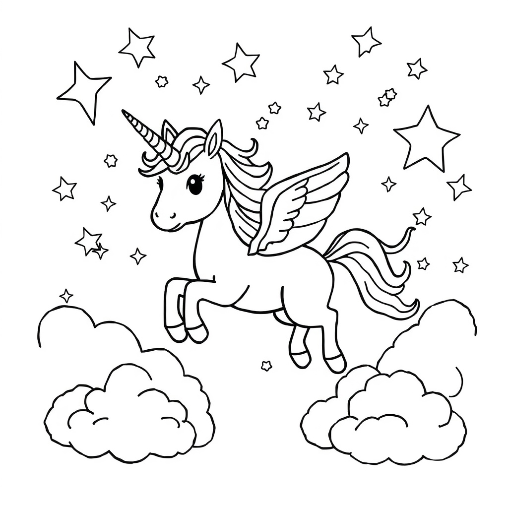 Free printable unicorn coloring pages for kids. Download high-quality line art instantly. No signup required — 8 unique unicorn designs to print and color.